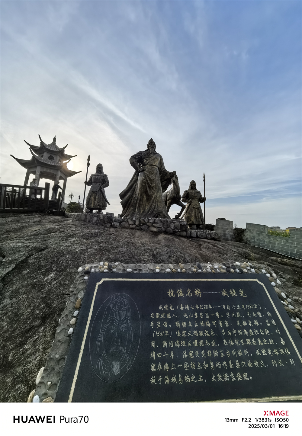 行至东屏山麓,戚继光花岗岩雕像巍然矗立。将军按剑远眺,甲胄纹路间仿佛仍回荡着抗倭战鼓。碑文记载嘉靖年间在此修筑烽火台的往事,四百年前的火把,照亮了今日游人脚下的青石板路。