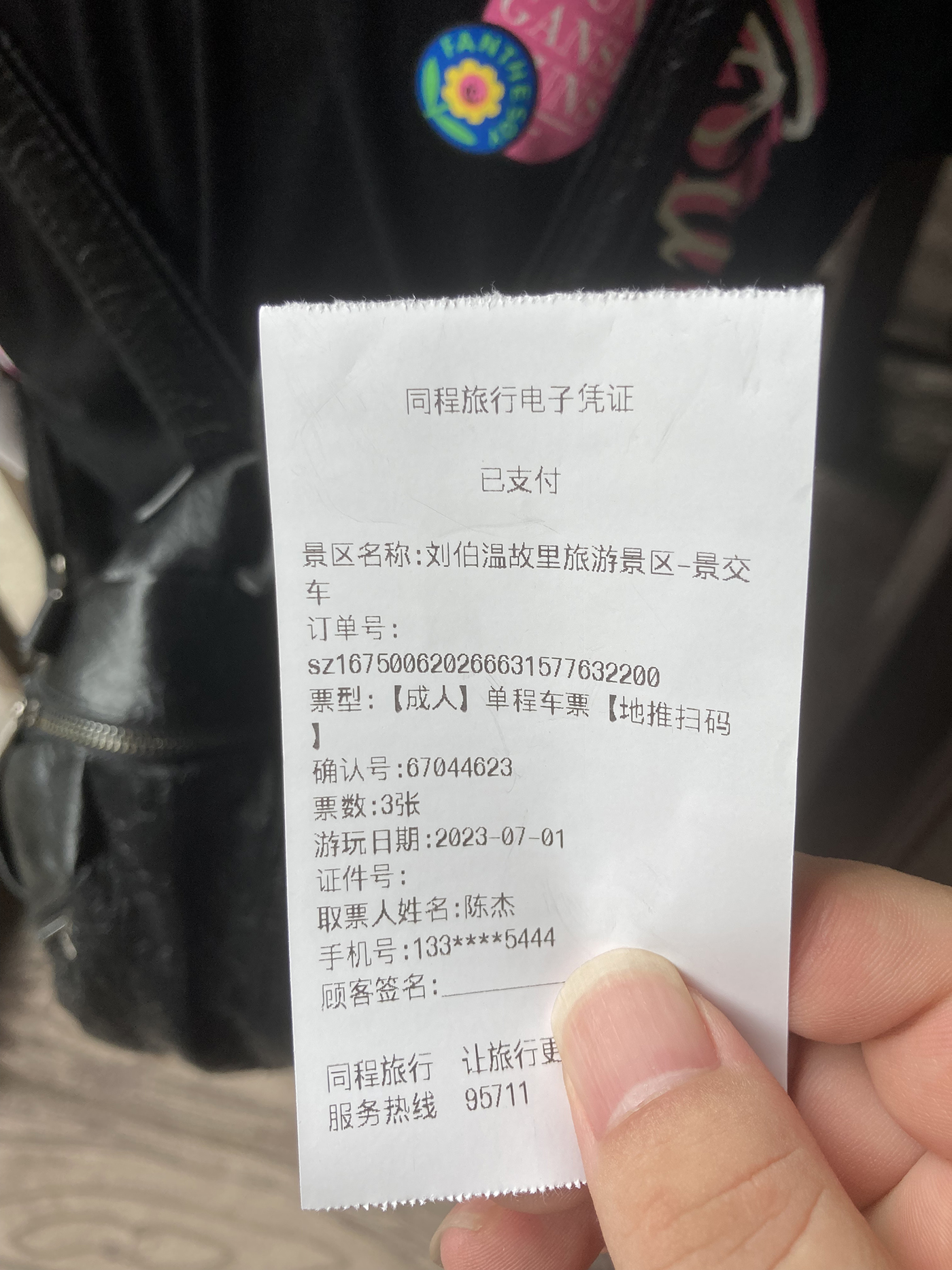 临走,问了一下卖雨衣的老大爷,说网上买票要比柜台买票便宜10块钱每个人,于是我们就在抖音里搜了一下买的票